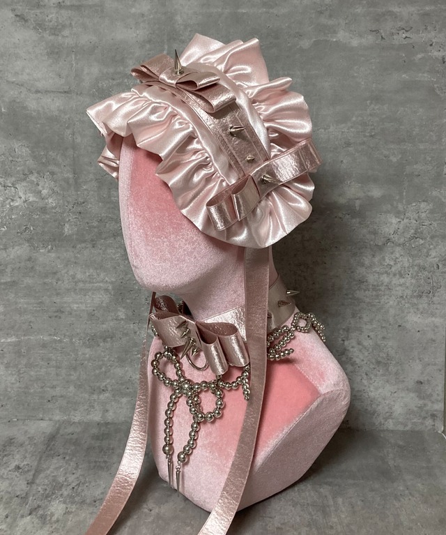美しい光沢のブライダルサテンを使用し、上品さとスパイクのハードさをmixしたヘッドドレスです。 ■ カラー/サイズ/バリエーション ・カラーバリエーション: 【ピンク】、シルバー、ブラック、ブルー ・サイズ: フリーサイズ(調整可能) 縦幅約15.5cm 横幅約36cm リボン約61〜62cm ※ヘッドドレス単体での販売です。